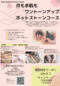 秋祭りイベントで「ホットストーンハンドマッサージ」をTOKU3からご提供しますっ🙆‍♀️